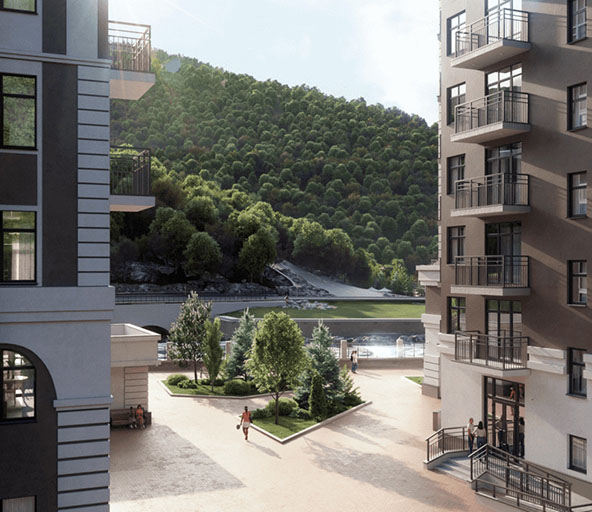 Апартаменты на высоте 560 метров с уникальным видом на горы с коллекцией сервисов 5-ти звездочного отеля, прямым доступом к горнолыжным подъемникам, ресторанам, спа-центру и шоппингу